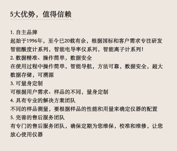 13. 選配專用電極,能精確的測量純水、土壤、微量樣品、粘度高和低離子濃度等樣品