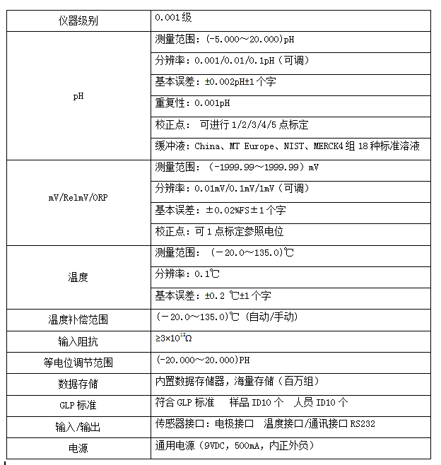分辨率為 0.001pH/0.01mV,具有極高精確度,pH 、mV、RelmV、ORP、T值多參數(shù)測量